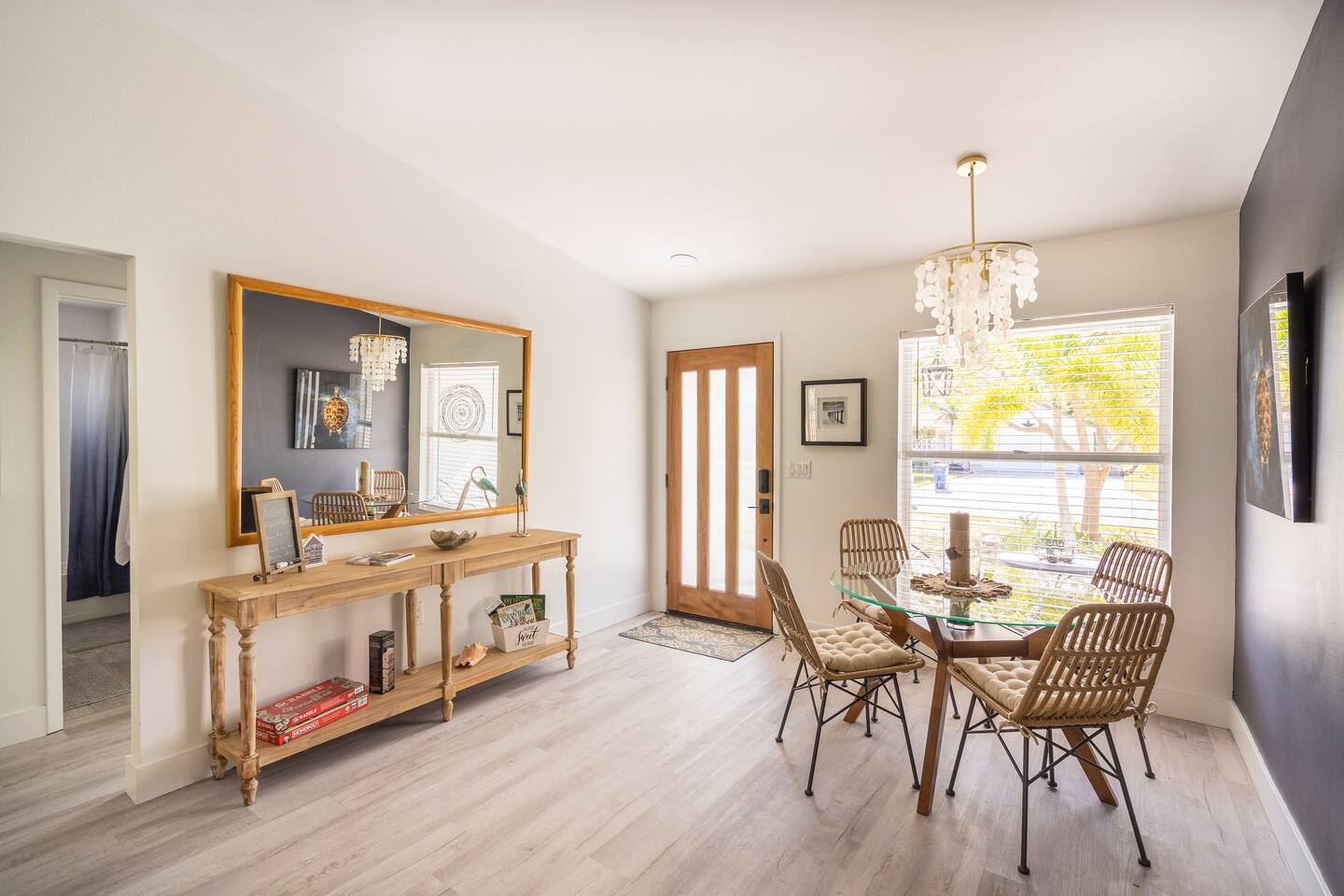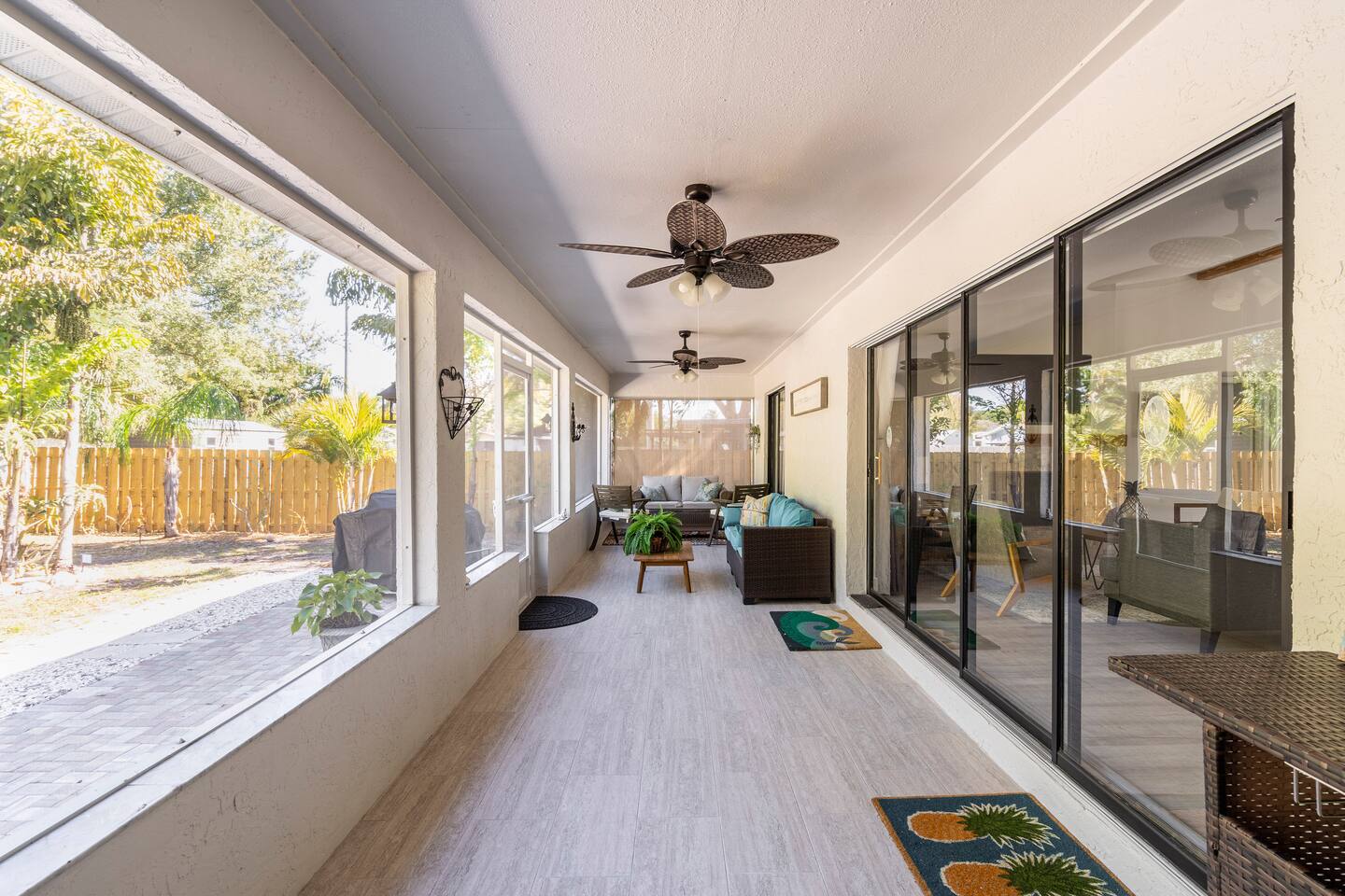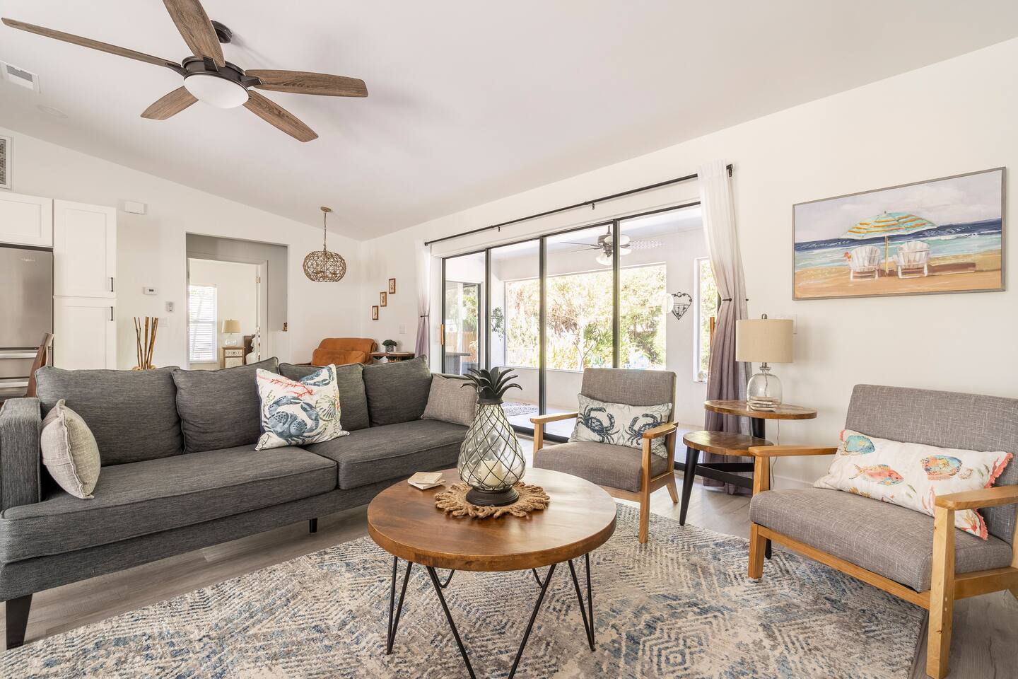 Palma Sola GEM in Bradenton - So close to Anna Maria Island, centrally located to EVERYTHING you would want in the area, this 3 bedroom, 2 full baths, with HUGE covered Lanai and Lush yard is just PERFECT for a short Beach escape or a longer stay in one of the most coveted locations in the West Coast of Florida. Enjoy the stylish and newly furnished open flow spaces in this unique home. We also include cruise bikes to get around the gorgeous neighborhood and get to nearby coastal attractions.