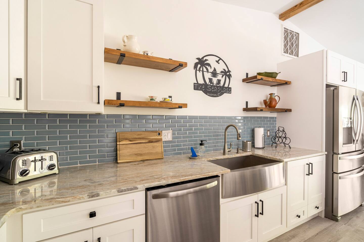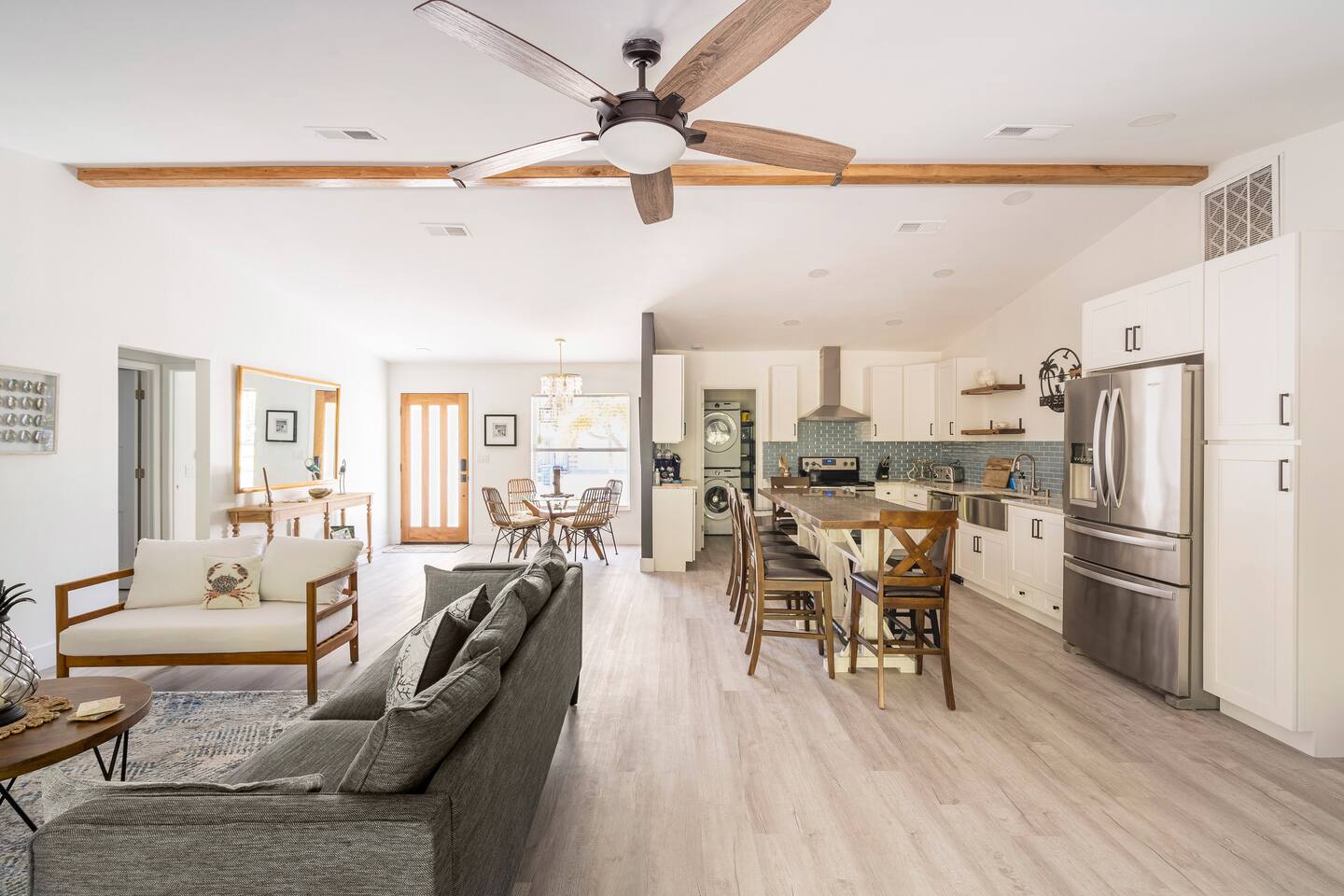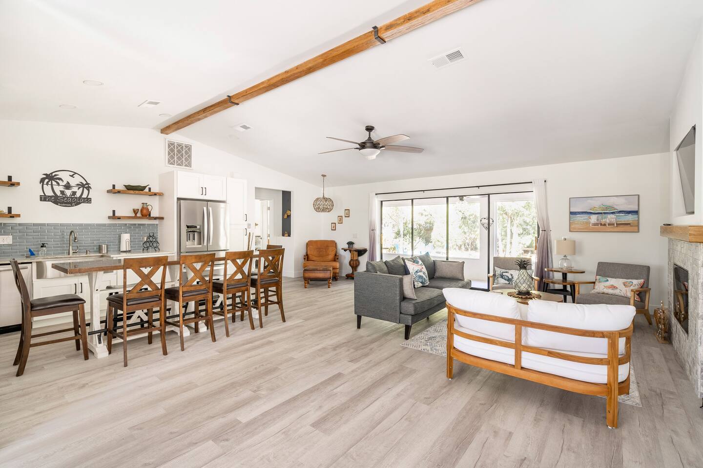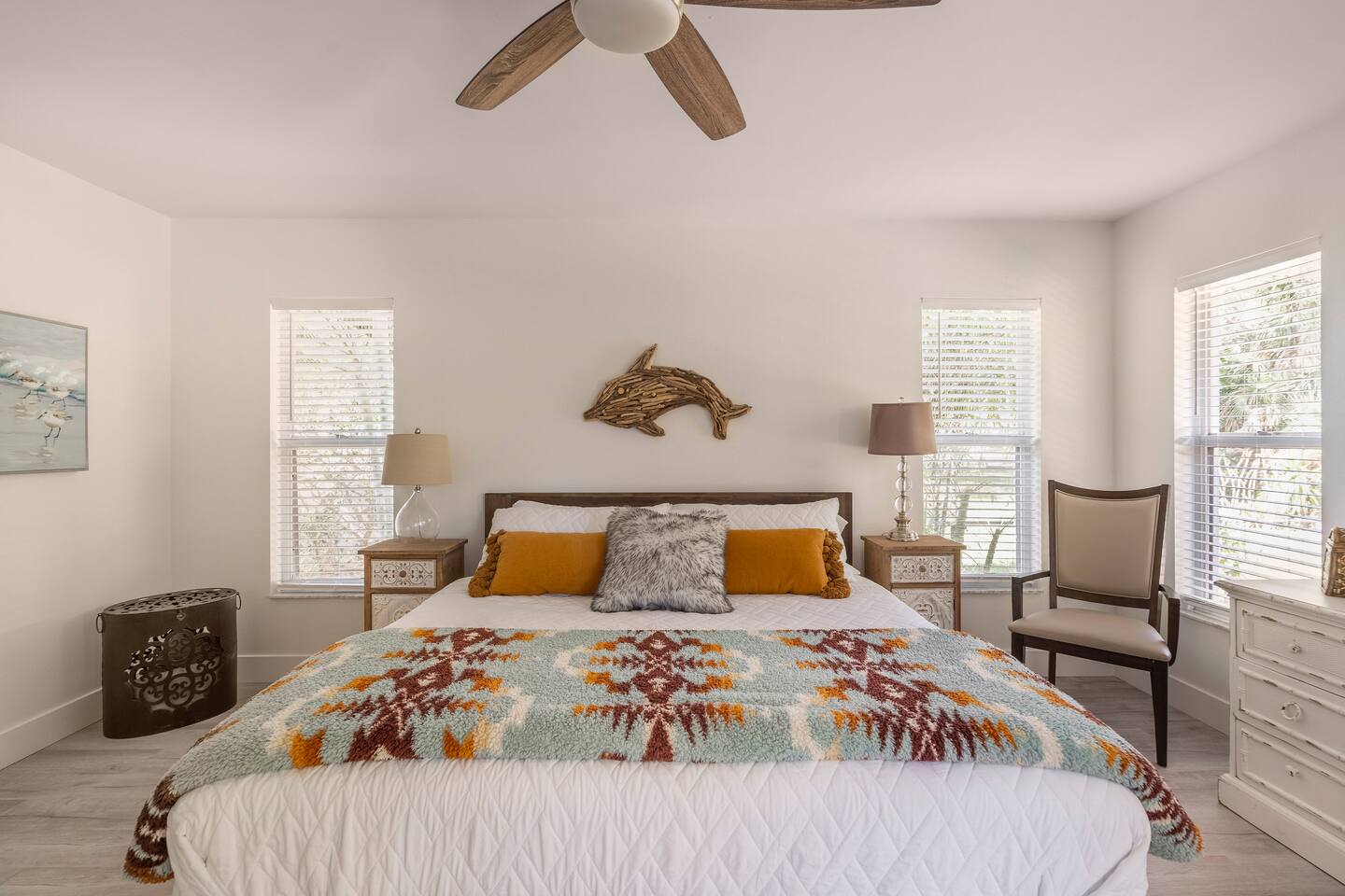 Palma Sola GEM in Bradenton - So close to Anna Maria Island, centrally located to EVERYTHING you would want in the area, this 3 bedroom, 2 full baths, with HUGE covered Lanai and Lush yard is just PERFECT for a short Beach escape or a longer stay in one of the most coveted locations in the West Coast of Florida. Enjoy the stylish and newly furnished open flow spaces in this unique home. We also include cruise bikes to get around the gorgeous neighborhood and get to nearby coastal attractions.