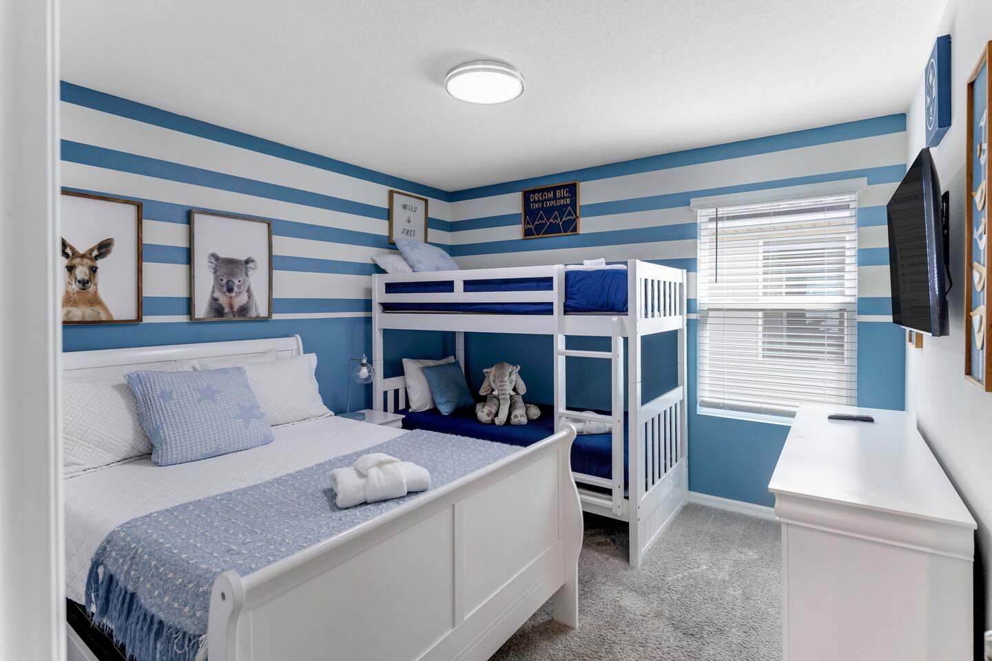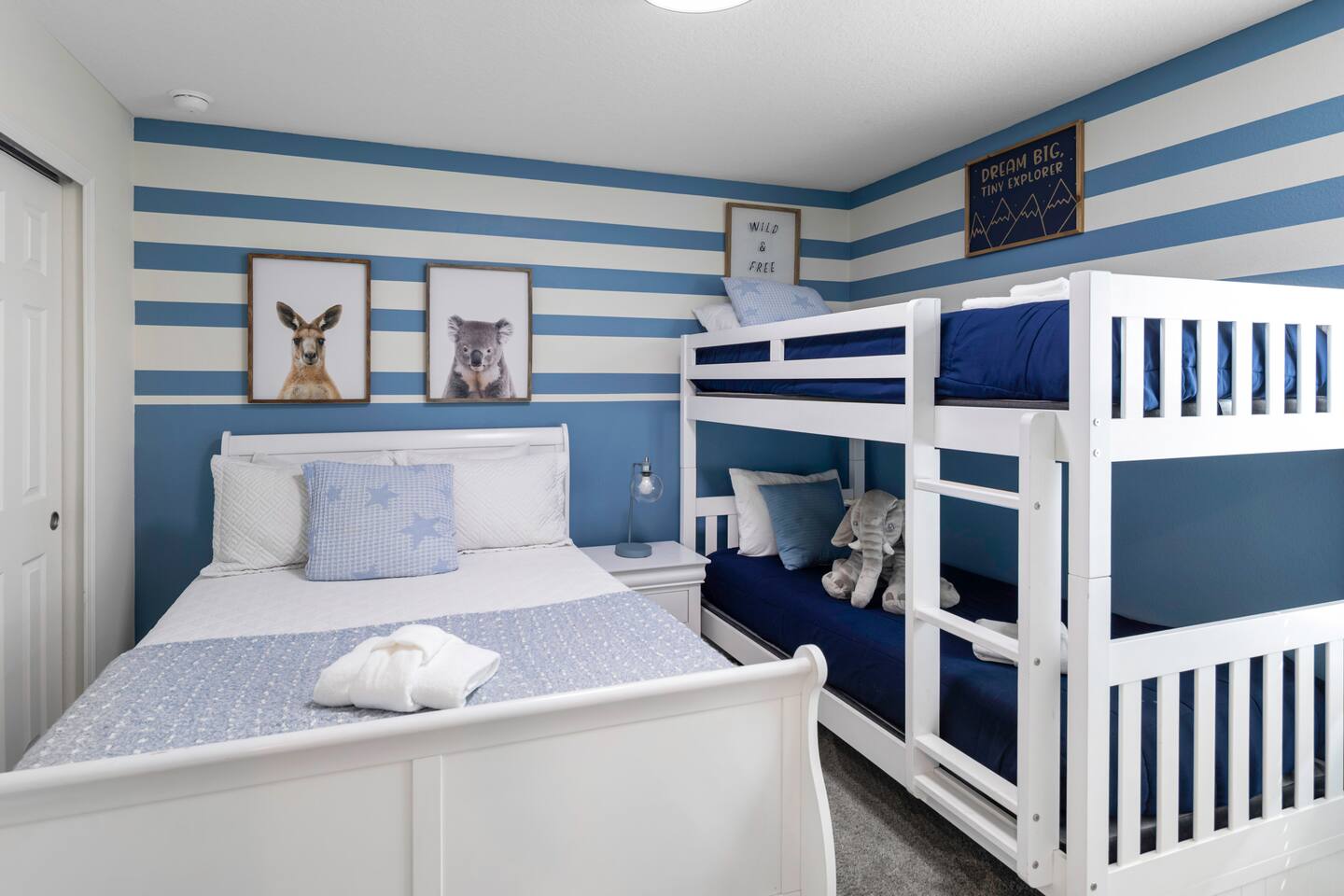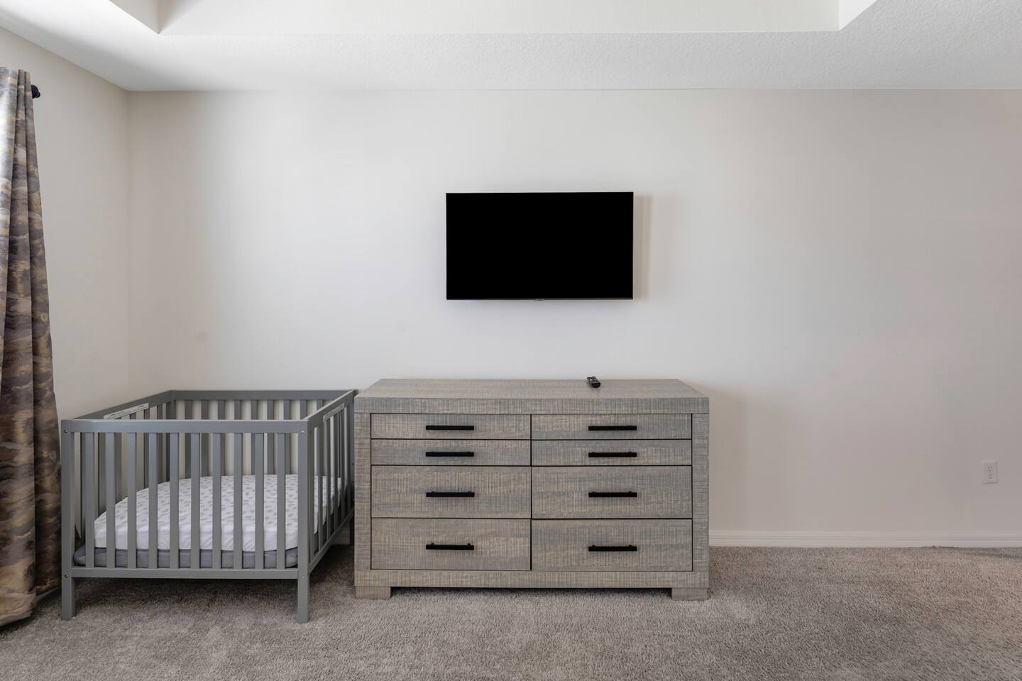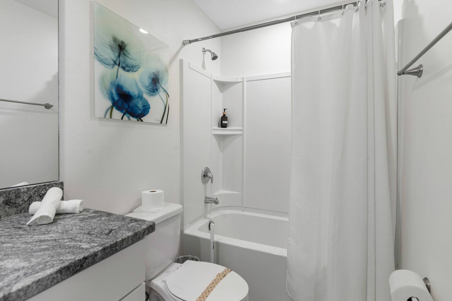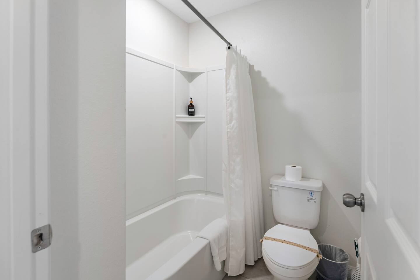 This amazing property features a great spacious layout, comprised of: Downstairs: Master King suite with attached bathroom (walk-in shower) Queen bedroom with adjacent bathroom (walk in shower) Huge kitchen island, pantry, open floorpan with stylish living room and dining table for 12 guests and of course-the beautiful pool and spa with very private back view. Upstairs: Second living area with it's own TV and seating areas Queen master suite with attached bathroom (walk in shower) Queen suite with attached bathroom (tub shower combo) Detached Queen bedroom Detached full bathroom (tub shower combo) Jack and Jill bathroom (tub shower combo) serving the jungle bedroom with a full and a twin beds and the Surfer's bedroom with 2 full bedrooms. The home also features a dedicated laundry area, a fully functioning garage with automatic opener and all of the baby essentials, such as an actual crib, pack and play and high chair. The home accommodates up to 3 standard size vehicles, between the garage and driveway. This is hands down the best value at Solara!
