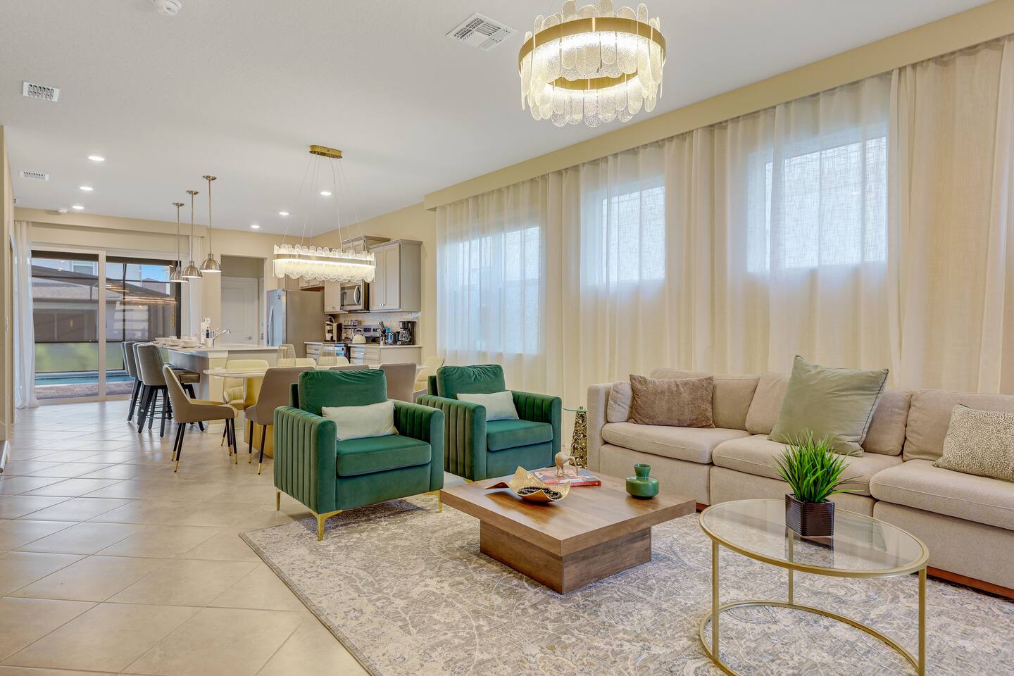 Prepare to be amazed! This BRAND NEW elegantly furnished storybook resort home with 5 full ensuites is the absolute vacation dream! Located at the new Windsor Cay Resort, only a skip and a hop from DISNEYWORLD and all other area attractions! Featuring an incredible Clubhouse and Waterpark FREE ACCESS for our guests to enjoy ☺️ Be one of the first guests to enjoy the AMAZING NEW WATER PARK AND CLUBHOUSE AT Windsor Cay!!!