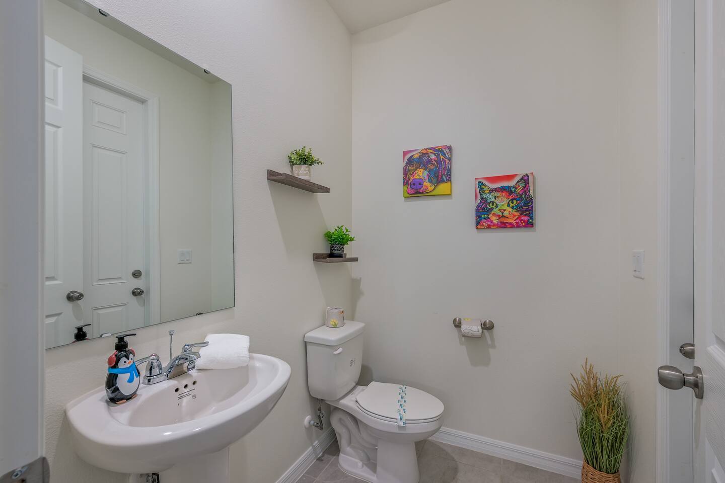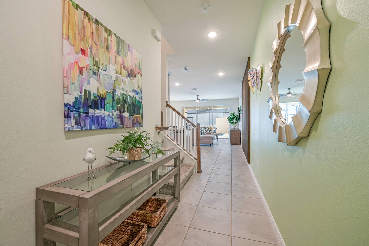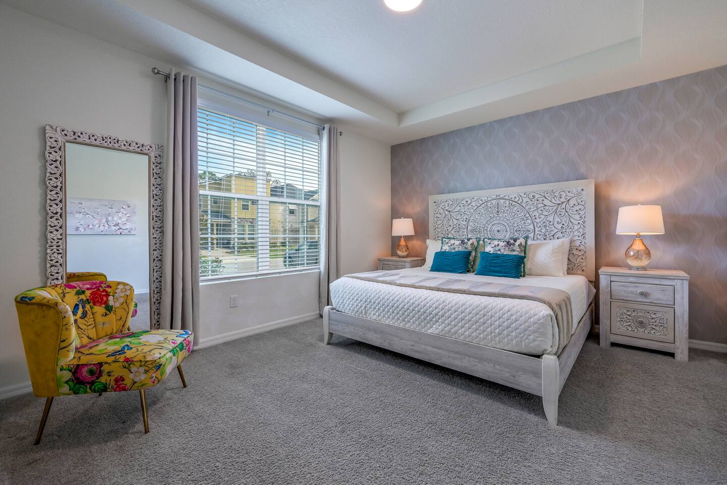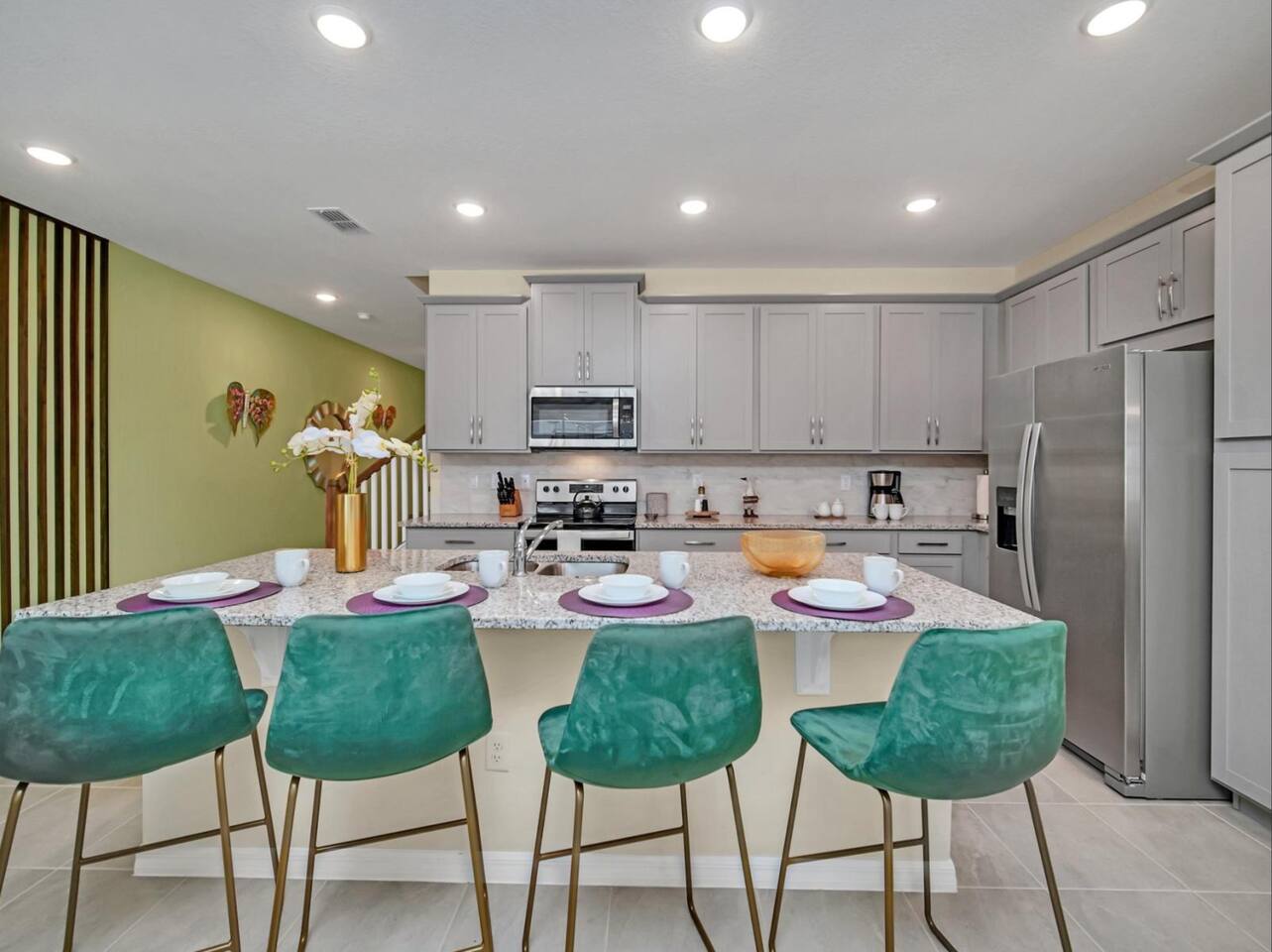 No details were spared on this gorgeous home with 3 full ensuites, open concept floor plan, elegant furnishings, and luxurious appointments. This Solara Resort townhome is the private home gem you were looking for! Solara Resort is a top rated gated resort community at the center of all of Orlando and Kissimmee’s exciting attractions. Located just a short 10 min drive from the gats of Walt Disney World, this stunning resort offers everything from a luxury clubhouse to expansive water complex and sports activities, so parks are optional! As a guest of Solara Resort, you can enjoy free, unlimited access to all resort amenities, including: -Heated Grand Pool -FlowRider Wave/Surf Simulator (Fee Required) -Poolside Cabanas -Pool Bar -Fitness Center -Outdoor Fitness Lawn -Sand Volleyball Court -Soccer Field -Full-sized Basketball Court -Indoor and Outdoor Lounges -Workstations -Tween/teen Hangout Center -Children’s Playground -Ice Cream Parlor -Bar and Grill -And more! THE HOME: The kitchen features every gadget to please every cook, from the fast-food connoisseur to the accomplished Home Chef. The large spaces and enormous island offer an array of appliances, custom cabinetry, and lots of seating options.Beautiful artwork and modern decor accents complete the look and feel of the elegant, yet comfortable spaces. All bedroom and living spaces feature their very own smart TVs, so gather 'round for a flick or game nights. THE ROOMS: The Master Bedroom features a king size bed with quality mattress and linens, an elegant headboard, and additional cozy seating that is ideal for curling up with a good book. The private master Bath boasts dual sinks and spacious countertops and shower Second Master ensuite features a Queen Size bed and super cool. tropical decor and a full bathroom with shower/tub combination The Third Master ensuite offers yet another Queen size bed with a beautiful blue accent wall, and walk-in shower in its very now bathroom Bedroom #4 also offers a Queen size bed with a shiplap headboard and beautiful colors for a restful night after the parks Bedroom #5 is a super fun themed room with two twin sized beds, wall-mounted television, large dresser and is located right next to the upstairs second living area, with a double sofa-bed (in case you want room to spread out), it's own TV and a detached bathroom, serving the living area and kid's themed room. Washer and dryer is located right inside the home and is free to sue-we even provide a starter pack with laundry pods!! Now-Step outside onto your very own private screened-in lanai for private fun it the home's very own Splash Pool or for lounging, dining out or grilling on the free BBQ. You may choose to heat the private pool for only $35 per night-recommended from November to April-please request immediately after booking and must have the heat turned on for the duration of the stay. Don't wait-this is a new listing from a highly experienced host and we would love to host you!