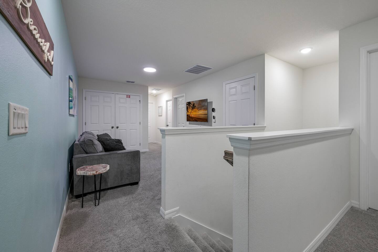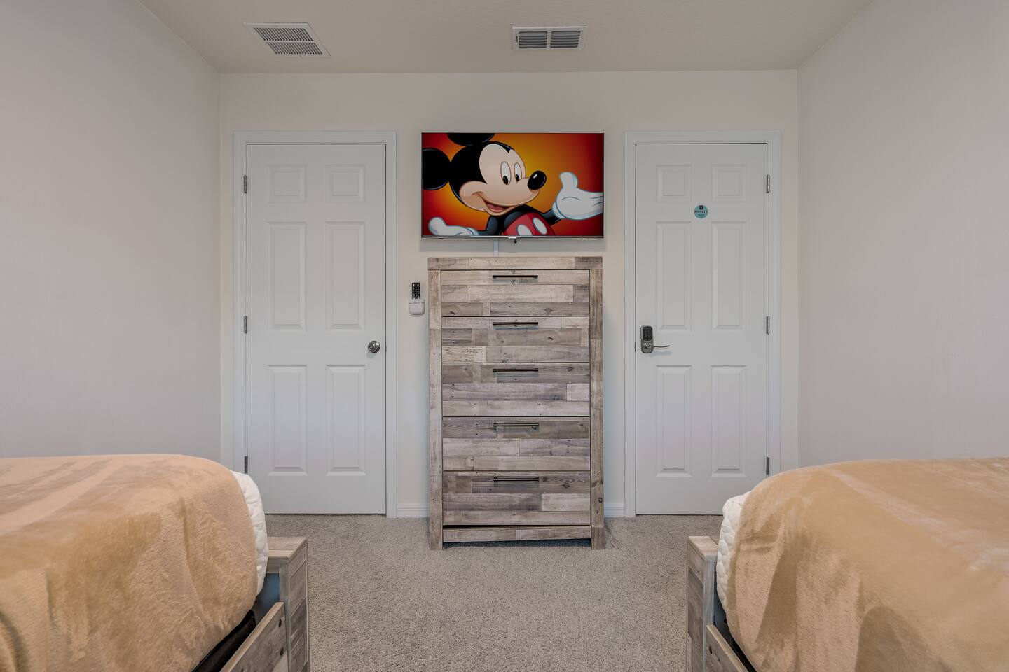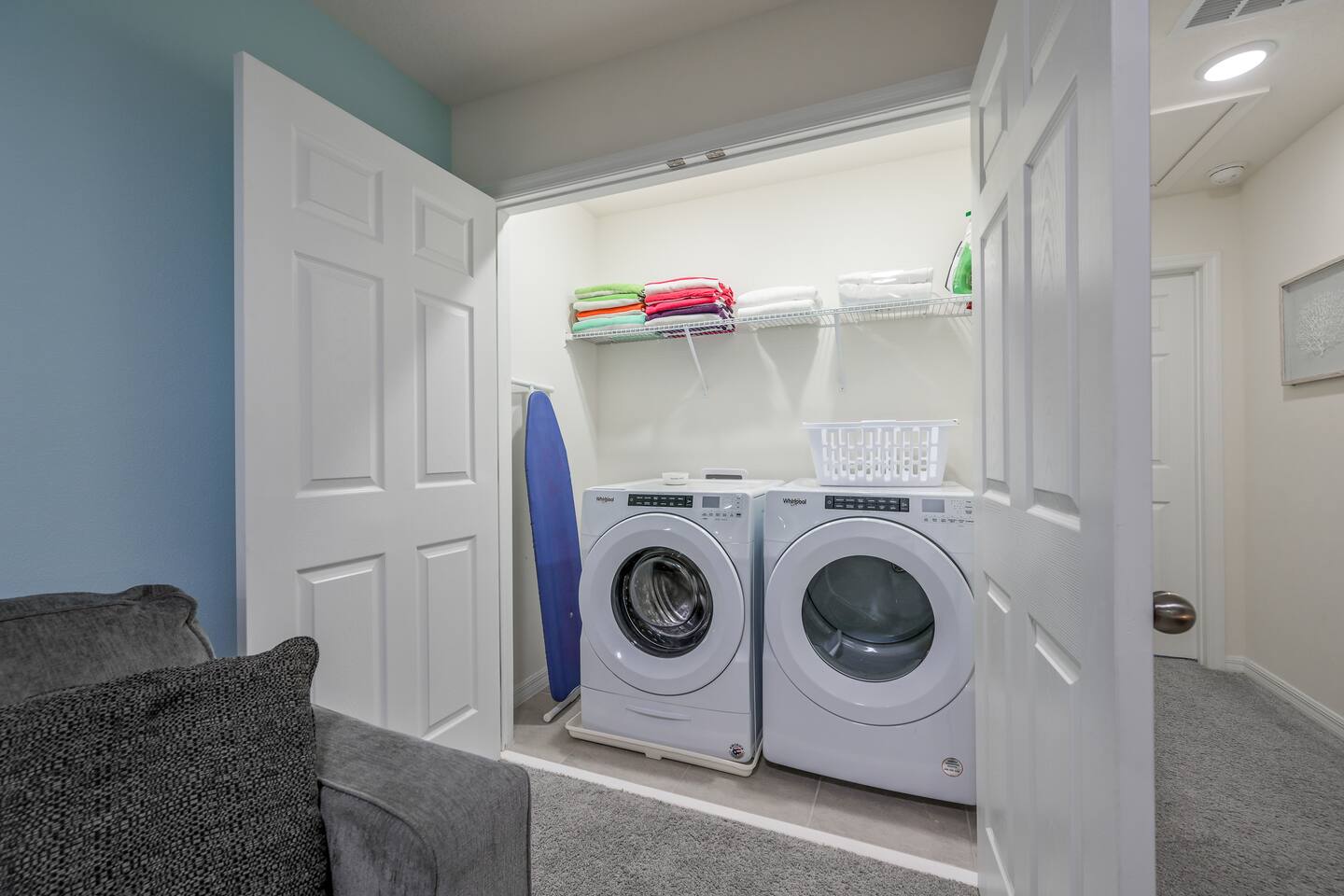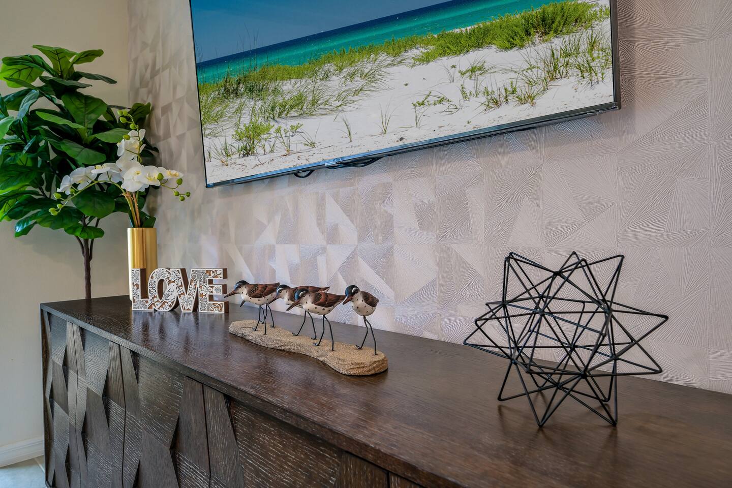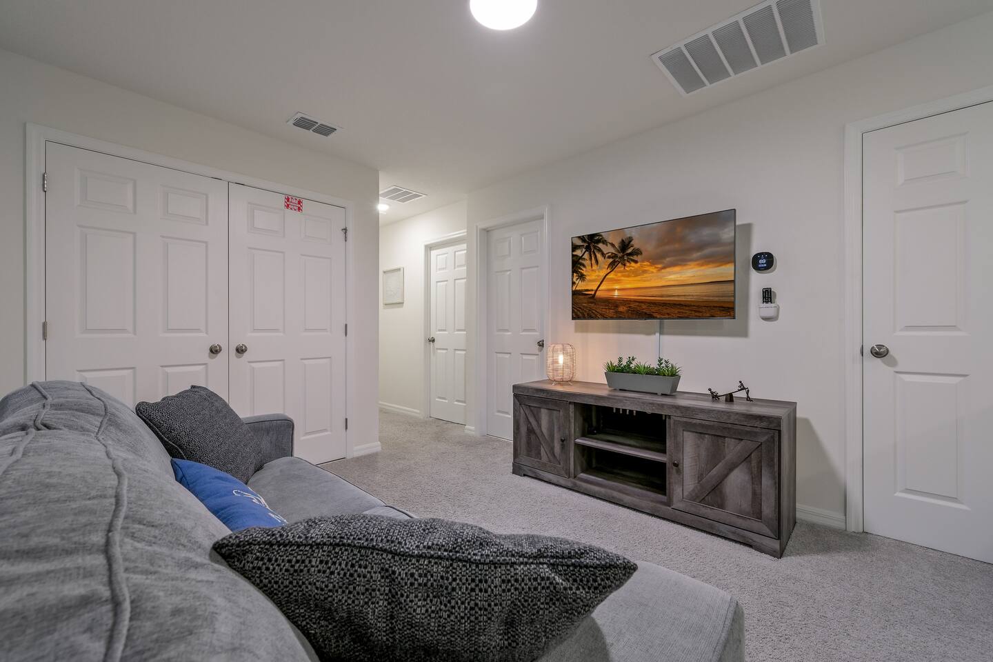 No details were spared on this gorgeous home with 3 full ensuites, open concept floor plan, elegant furnishings, and luxurious appointments. This Solara Resort townhome is the private home gem you were looking for! Solara Resort is a top rated gated resort community at the center of all of Orlando and Kissimmee’s exciting attractions. Located just a short 10 min drive from the gats of Walt Disney World, this stunning resort offers everything from a luxury clubhouse to expansive water complex and sports activities, so parks are optional! As a guest of Solara Resort, you can enjoy free, unlimited access to all resort amenities, including: -Heated Grand Pool -FlowRider Wave/Surf Simulator (Fee Required) -Poolside Cabanas -Pool Bar -Fitness Center -Outdoor Fitness Lawn -Sand Volleyball Court -Soccer Field -Full-sized Basketball Court -Indoor and Outdoor Lounges -Workstations -Tween/teen Hangout Center -Children’s Playground -Ice Cream Parlor -Bar and Grill -And more! THE HOME: The kitchen features every gadget to please every cook, from the fast-food connoisseur to the accomplished Home Chef. The large spaces and enormous island offer an array of appliances, custom cabinetry, and lots of seating options.Beautiful artwork and modern decor accents complete the look and feel of the elegant, yet comfortable spaces. All bedroom and living spaces feature their very own smart TVs, so gather 'round for a flick or game nights. THE ROOMS: The Master Bedroom features a king size bed with quality mattress and linens, an elegant headboard, and additional cozy seating that is ideal for curling up with a good book. The private master Bath boasts dual sinks and spacious countertops and shower Second Master ensuite features a Queen Size bed and super cool. tropical decor and a full bathroom with shower/tub combination The Third Master ensuite offers yet another Queen size bed with a beautiful blue accent wall, and walk-in shower in its very now bathroom Bedroom #4 also offers a Queen size bed with a shiplap headboard and beautiful colors for a restful night after the parks Bedroom #5 is a super fun themed room with two twin sized beds, wall-mounted television, large dresser and is located right next to the upstairs second living area, with a double sofa-bed (in case you want room to spread out), it's own TV and a detached bathroom, serving the living area and kid's themed room. Washer and dryer is located right inside the home and is free to sue-we even provide a starter pack with laundry pods!! Now-Step outside onto your very own private screened-in lanai for private fun it the home's very own Splash Pool or for lounging, dining out or grilling on the free BBQ. You may choose to heat the private pool for only $35 per night-recommended from November to April-please request immediately after booking and must have the heat turned on for the duration of the stay. Don't wait-this is a new listing from a highly experienced host and we would love to host you!