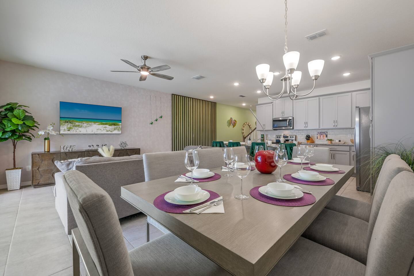 Never compromise! Get everything your family dreamed of their Disney vacation. This open, clean bright, FUN and spacious Pool Townhome boasts 5 bedrooms, 5 bathrooms and elegantly appointed rooms. You will love the personal attention to detail and the the high quality furnishings, mattresses and linens. The private Splash Pool adds the cherry on top, right off the living area, with a sunning patio, free use of the BBQ grill and outdoor dining space. Free pool heat until 4/31/2025!
