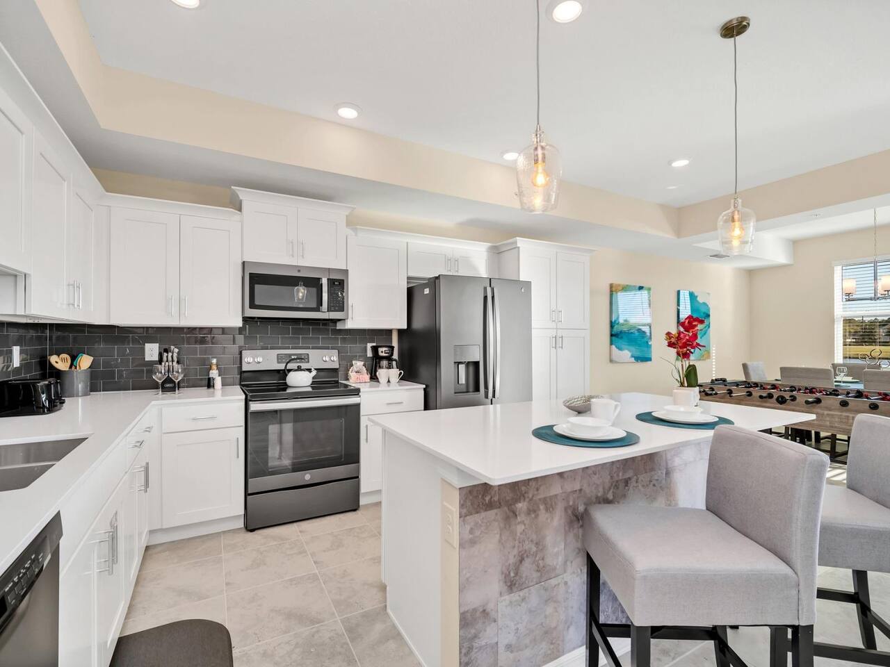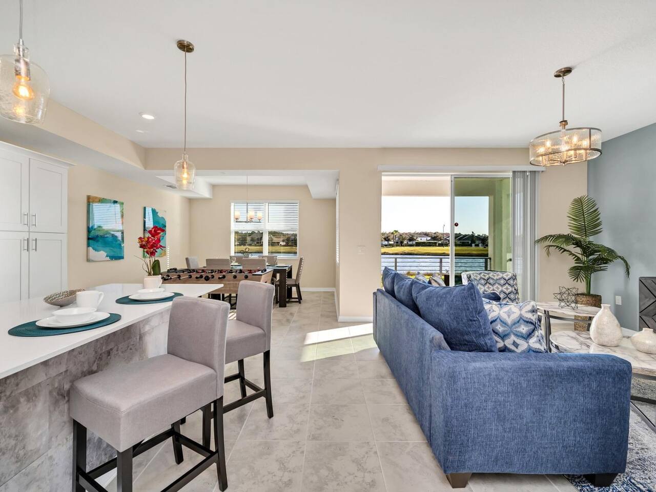 This super hip spacious condo is located in the BEST location to enjoy all of Orlando/Kissimee/Disney attractions. Bright and open floor plan, 2 large bedrooms, sparkling bathrooms, clean and stylish decor and gorgeous water vistas right off the private porch. The foosball table and lakefront patio add the fun factor. Storey Lake resort offers 2 water parks complete with lazy rivers, kayaks, pools, kiddie splash areas, sports fields and walking trails, so you picked the perfect vacay!