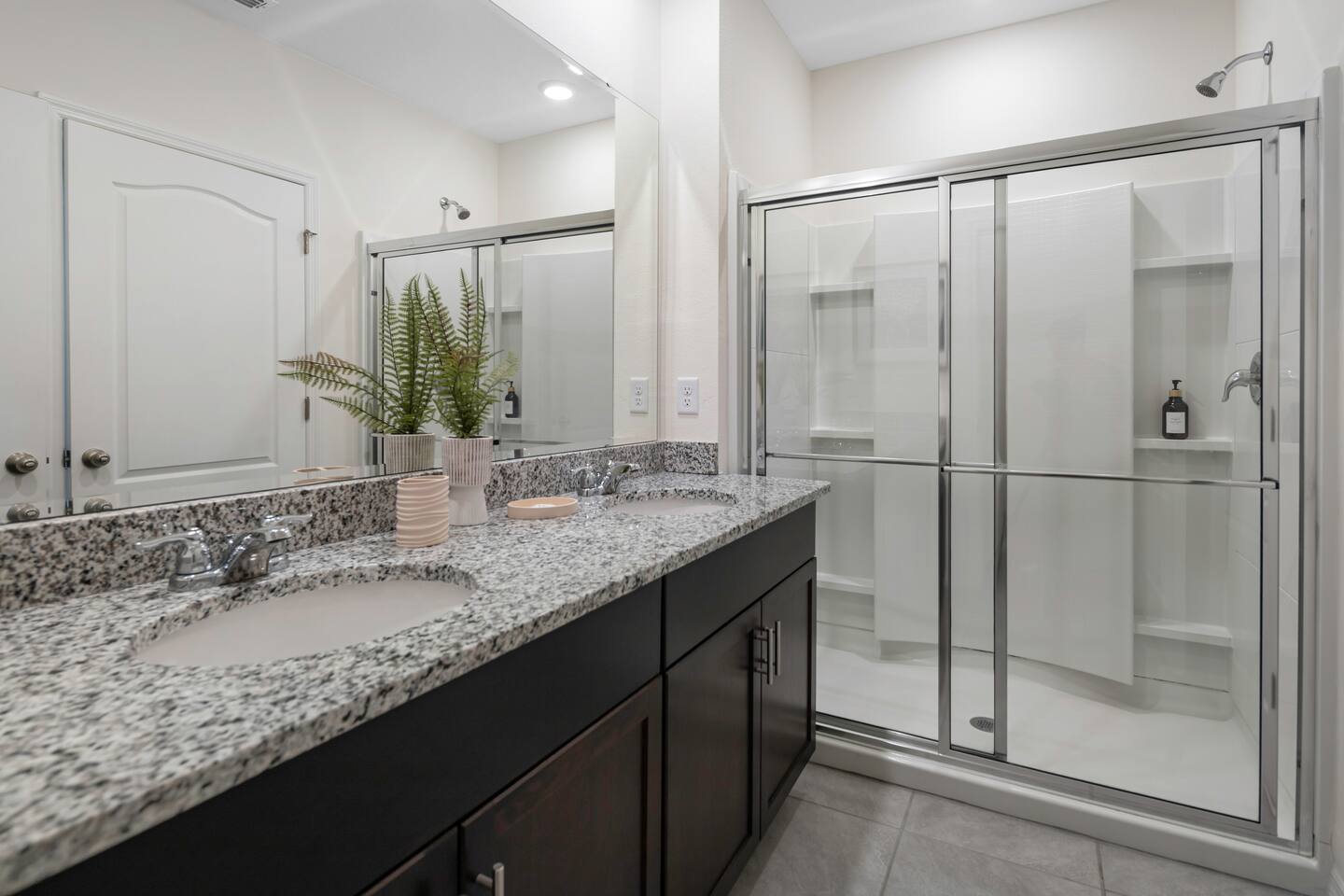 This is a gorgeous home in a gated community and offers access to a state of the art resort. Enjoy the best amenities in the best location to enjoy the area parks and attractions. The $35 or $45+tax resort fee is charged to the guests upon first arrival at the Clubhouse. Please send a copy of the receipt from the Clubhouse to us on the app for a refund, so you can enjoy no guest fees. The resort is cashless, so be sure to have a card handy for anything at the Clubhouse.