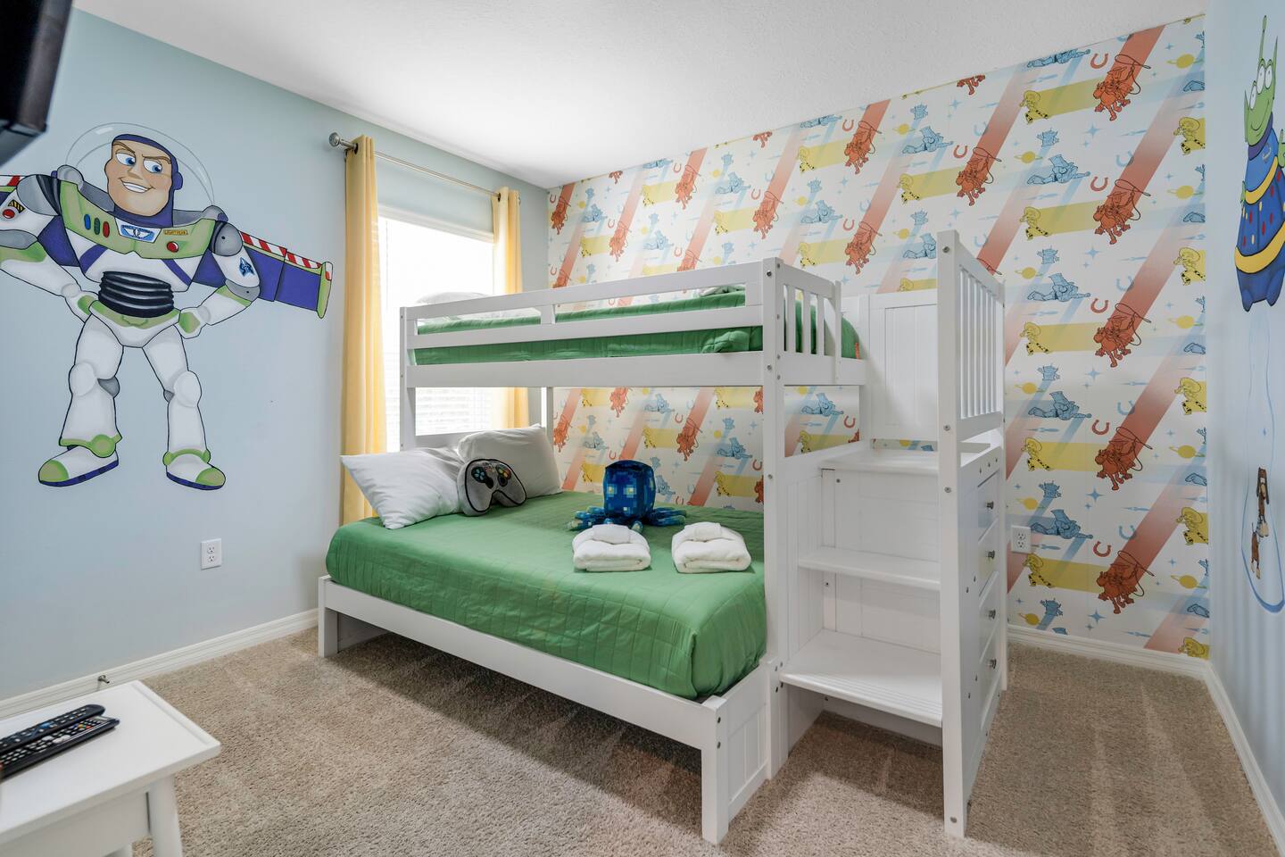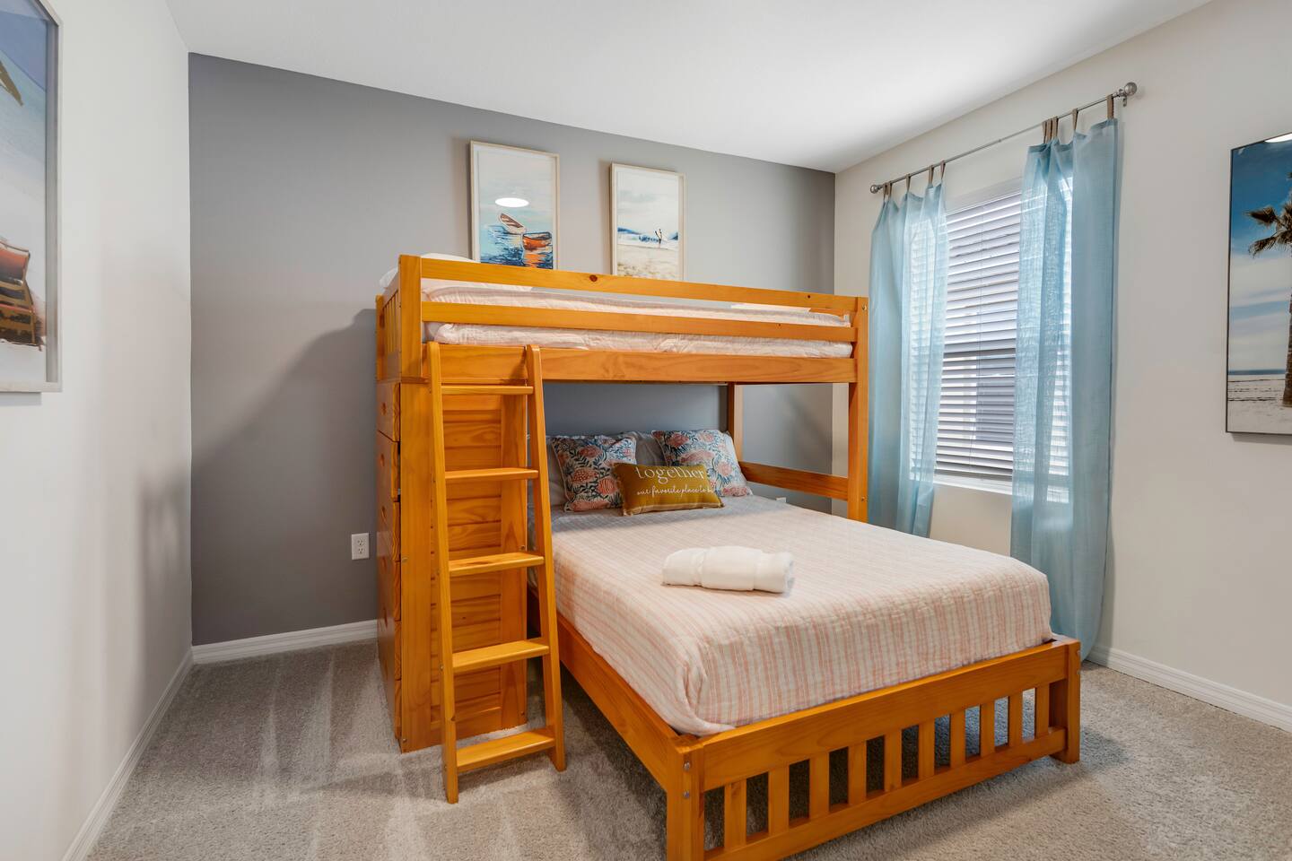 Layout of the home bedrooms and living spaces: Downstairs: * King suite with attached bathroom-walk in shower and garden tub; * Queen suite with attached bathroom-walk in shower; Pool 1/2 bath * Large living room with integrated full kitchen-huge beautiful island and gourmet gas stove * 2-car garage * Pool/spa covered and uncovered deck areas Upstairs: * King ensuite with attached bathroom and walk in shower; * Jack and Jill bathroom with walk-in shower serving a Queen bedroom and a bedroom with 2 full beds; * Detached full bathroom with bath tub; * Buz Lightyear bedroom with bunk bed (twin over full); * Second kid's room with bunk bed (twin over full) * Additional large bonus room with sectional sofa, TV Total number of bedrooms: 7 Total number of beds: 10 + sofa-bed Total number of bathrooms: 6 Total occupancy with 2 persons per each double bed: 16 All King and Queen bedrooms have attached bathrooms. The BBQ grill at the house is free to use. It is a gas grill and guests can refill it as needed at the nearest hardware store.